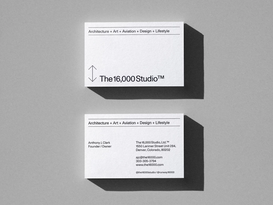 Anthony J. Clark is a photographer and passionate aviation enthusiast based in Denver, Colorado (US). As Anthony asked me to create an arrow symbol for his new studio, «The 16,000 Studio Ltd.™», i sent back an entire visual identity concept.